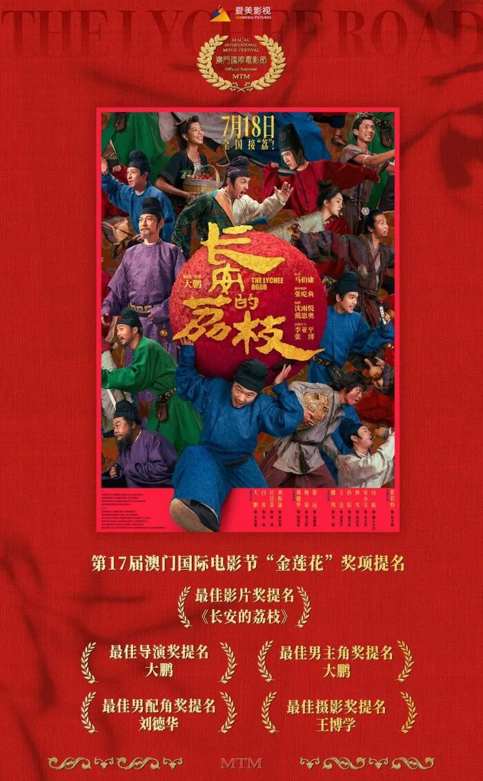 第17届澳门海外电影节“小脚花”奖项提名名单近日安定公布。记者11月28日从西安曲江影视投资(集团)有限公司(以下简称曲江影视集团)获悉,由西安市委宣传部参与摄制、曲江影视集团参与出品的历史剧情片《长安的荔枝》,一举入围本届电影节五项提名,将与《酱园弄·悬案》《东极岛》《唐探1900》《蛟龙步履(相配版)》等影片同台竞技,角逐本届电影节含金量最高的“最好影片奖”。